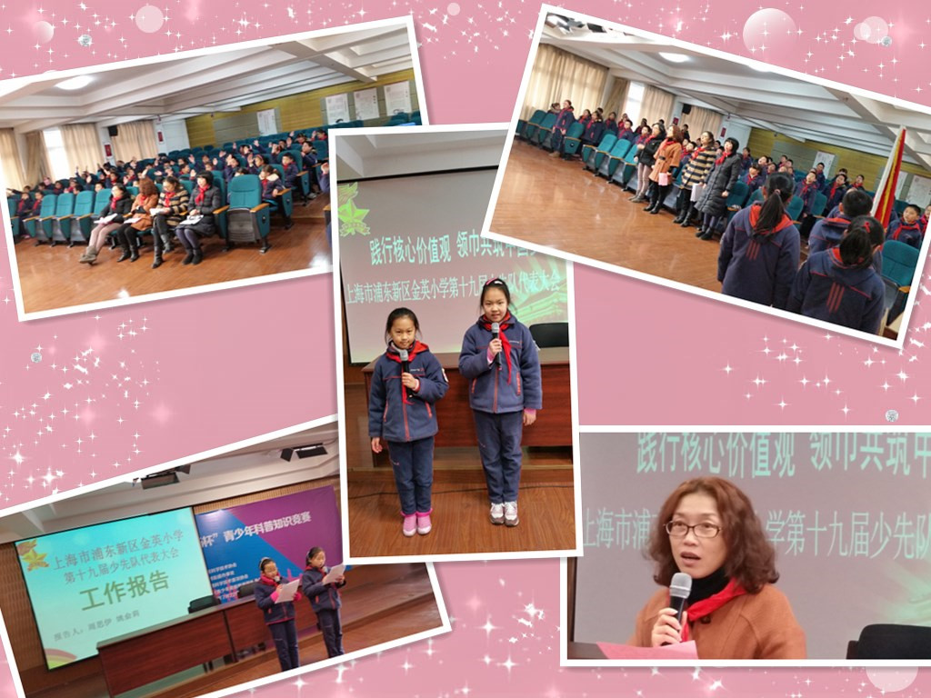 在2014年的最后一周,金英小学第19届少代会胜利落下了帷幕。这是一次由队员当家作主的盛会。大会上,张校长代表学校党政工作了热情洋溢的讲话,勉励队员们弘扬社会主义核心价值观,争做浦东好少年。接着,儿童团代表向少代会送上了美好的祝福。少代会期间,通过民主竞选方式,选举出了新一届大队委员,并进行了庄严地宣誓。校领导对少代会非常重视,对提交上来的70份提案进行了认真地分析和研究,针对提案中的问题,校领导分别作了详细、中肯的答复,给代表们交上了一份满意的答卷。