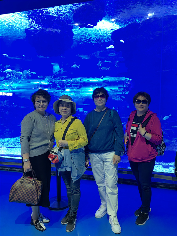 大家置身于海洋公园之中,与海洋动物来了一次亲密接触,感受海洋动物带给我们的奇妙与惊喜。可爱的虎鲸向大家招手,活泼的海豚和同伴嬉戏,调皮的海狮和人友好互动,美丽的美人鱼在水中翩翩起舞,漫步在各个场馆中,被海洋公园里奇妙的动物深深吸引。
