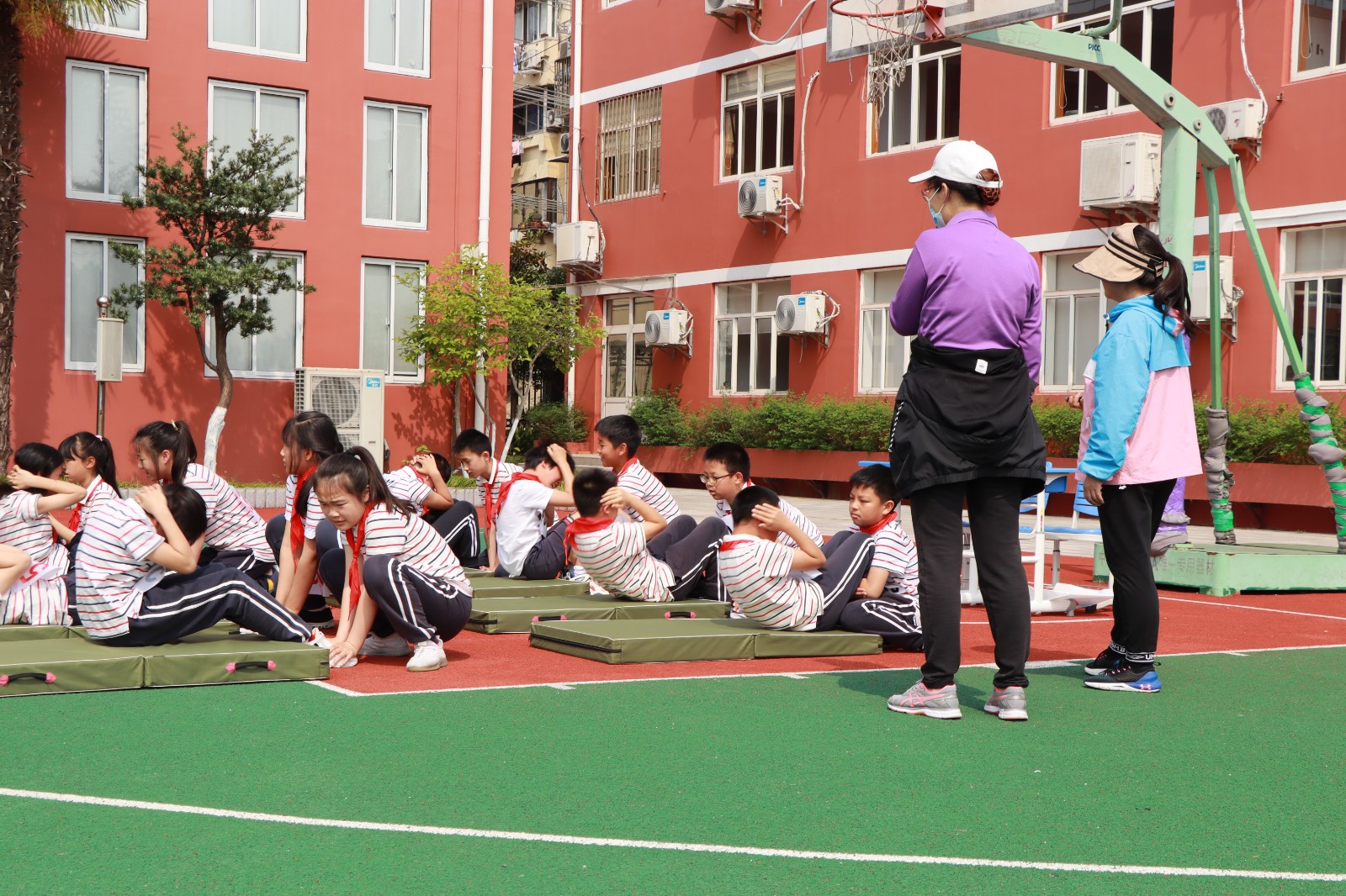 仰卧起坐,可以增强腰腹核心力量,垫子上的小运动员们,挥汗如雨,快速地仰、坐,展现了平时强身健体的运动习惯!