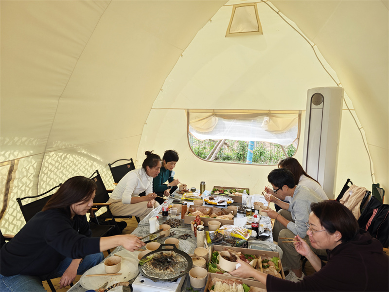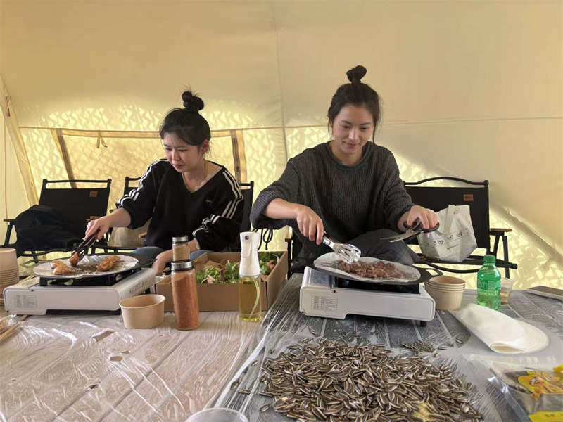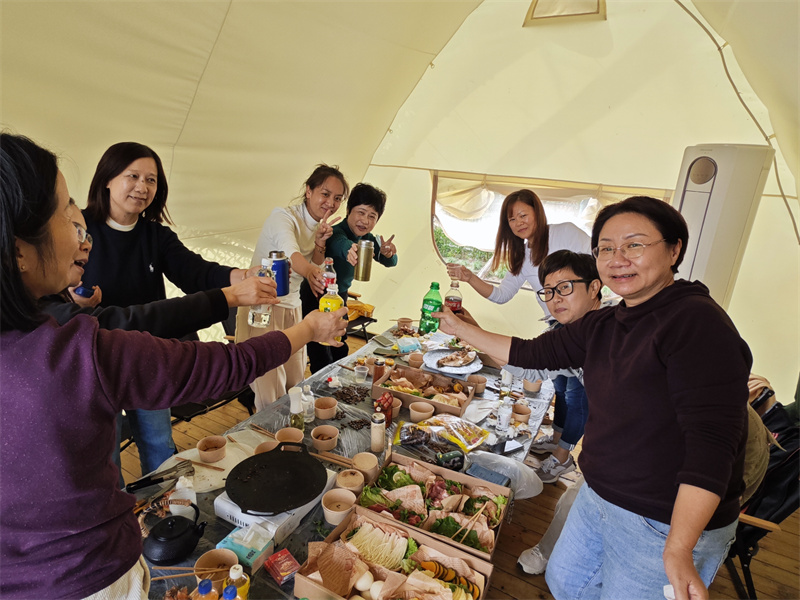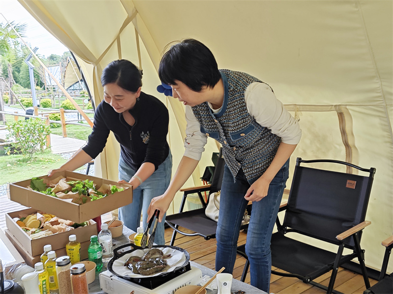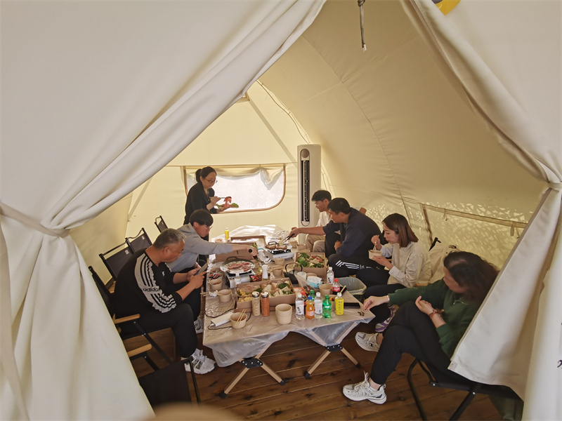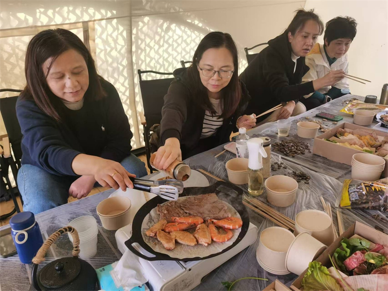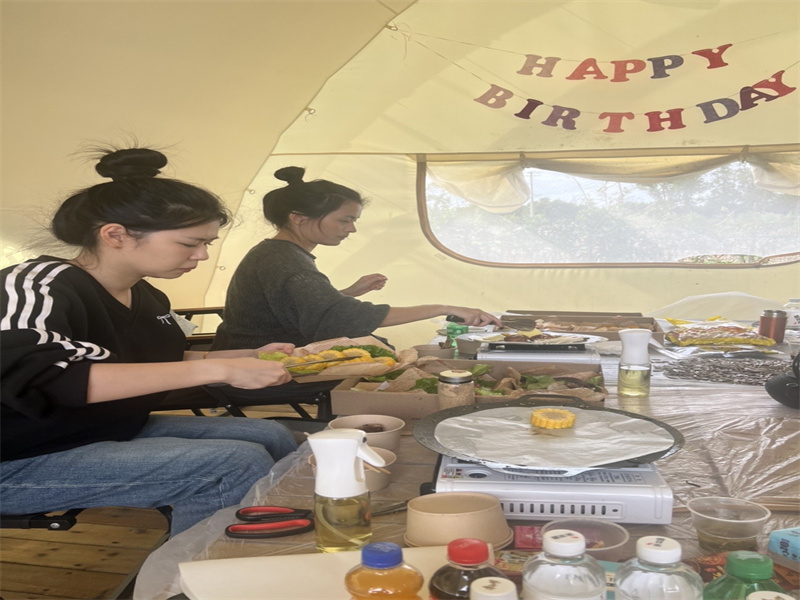美味的食物、可口的饮料、有趣的桌游等着我们去解锁!大家谈笑风生,围坐在一起享受着烤肉、甜点等美食带来的快乐,一边享受着美食一边欣赏着大自然的美景,好不惬意!飘出的阵阵浓烟伴随着我们的欢声笑语围绕在“溪谷”中。