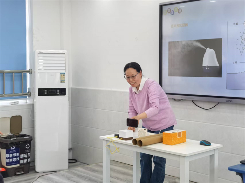 本次体验课从语文课本中《夜间飞行的秘密》一文切入,生动讲述蝙蝠利用超声波探路的原理,类比现代飞机雷达工作机制,引导同学们探索科学奥秘。理论讲解后,课程聚焦超声波加湿器,通过展示实物及雾化原理示意图,让同学们对超声波应用有了更直观的认识。