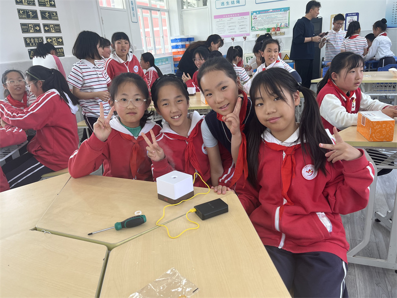 最令人期待的环节是亲自动手制作加湿器。在老师的指导下,同学们分组合作,专注投入。大家仔细连接线路、安装部件,遇到问题相互交流、积极请教。经过努力,一个个简易却功能完整的加湿器制作完成,教室里充满成功的喜悦。